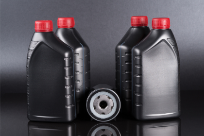 Oil bottles, coolant containers, lubricants, and car care packaging.